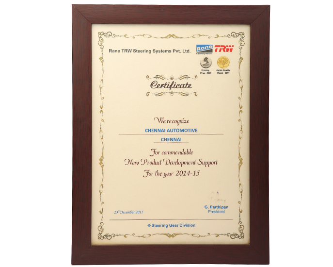 Best Supplier For New Product Development – 2015 from Rane TEW